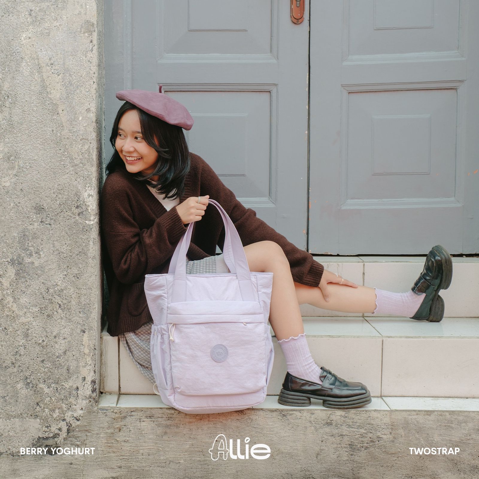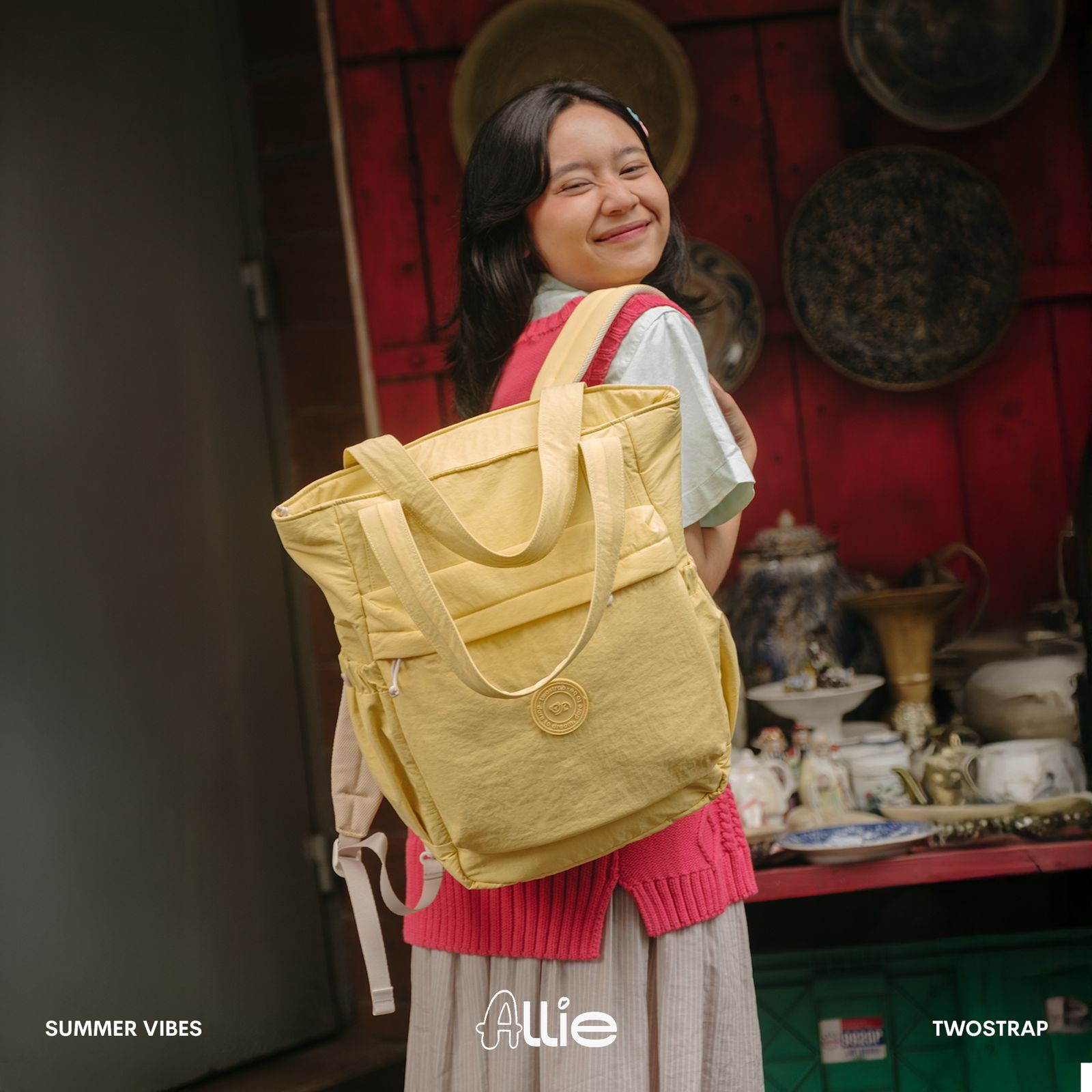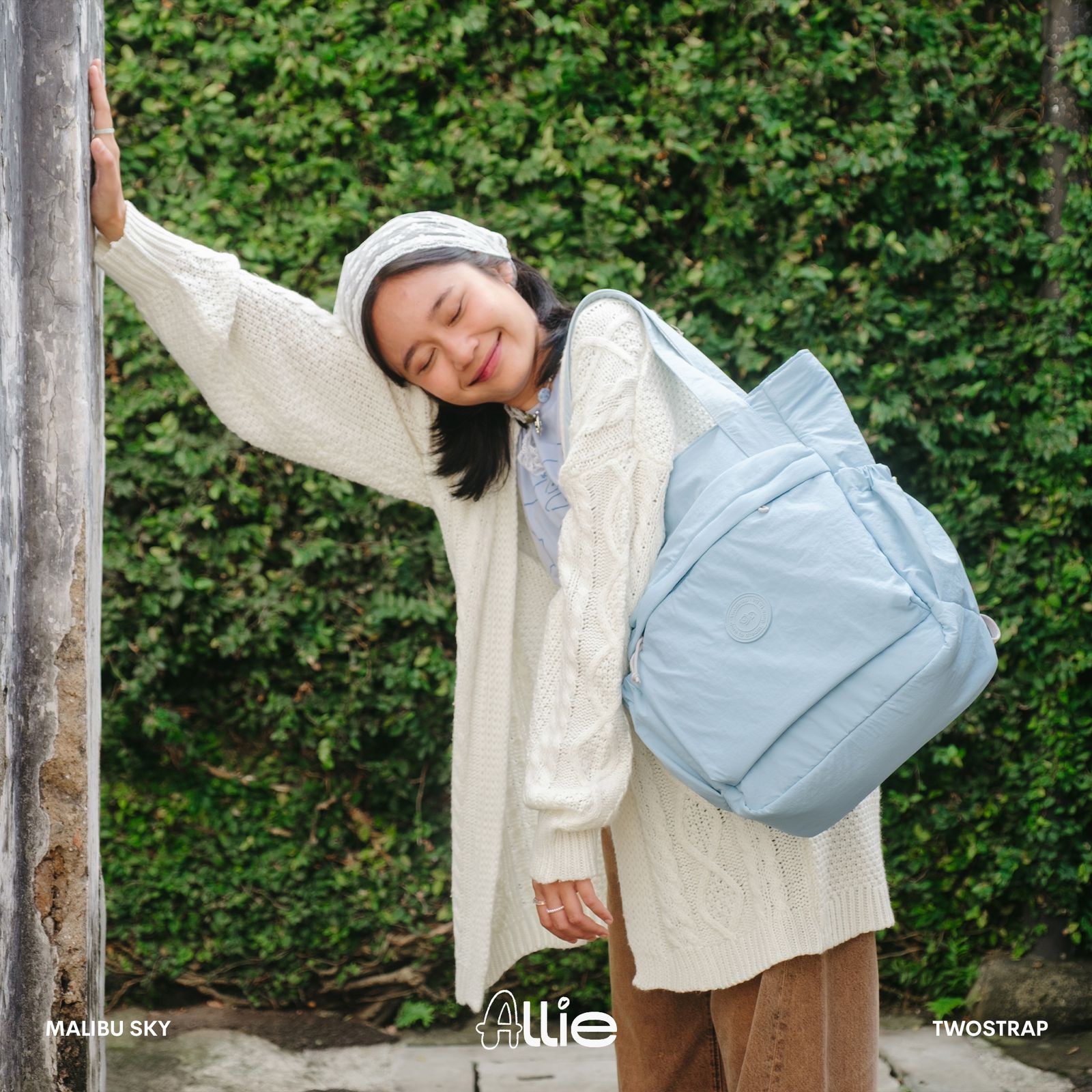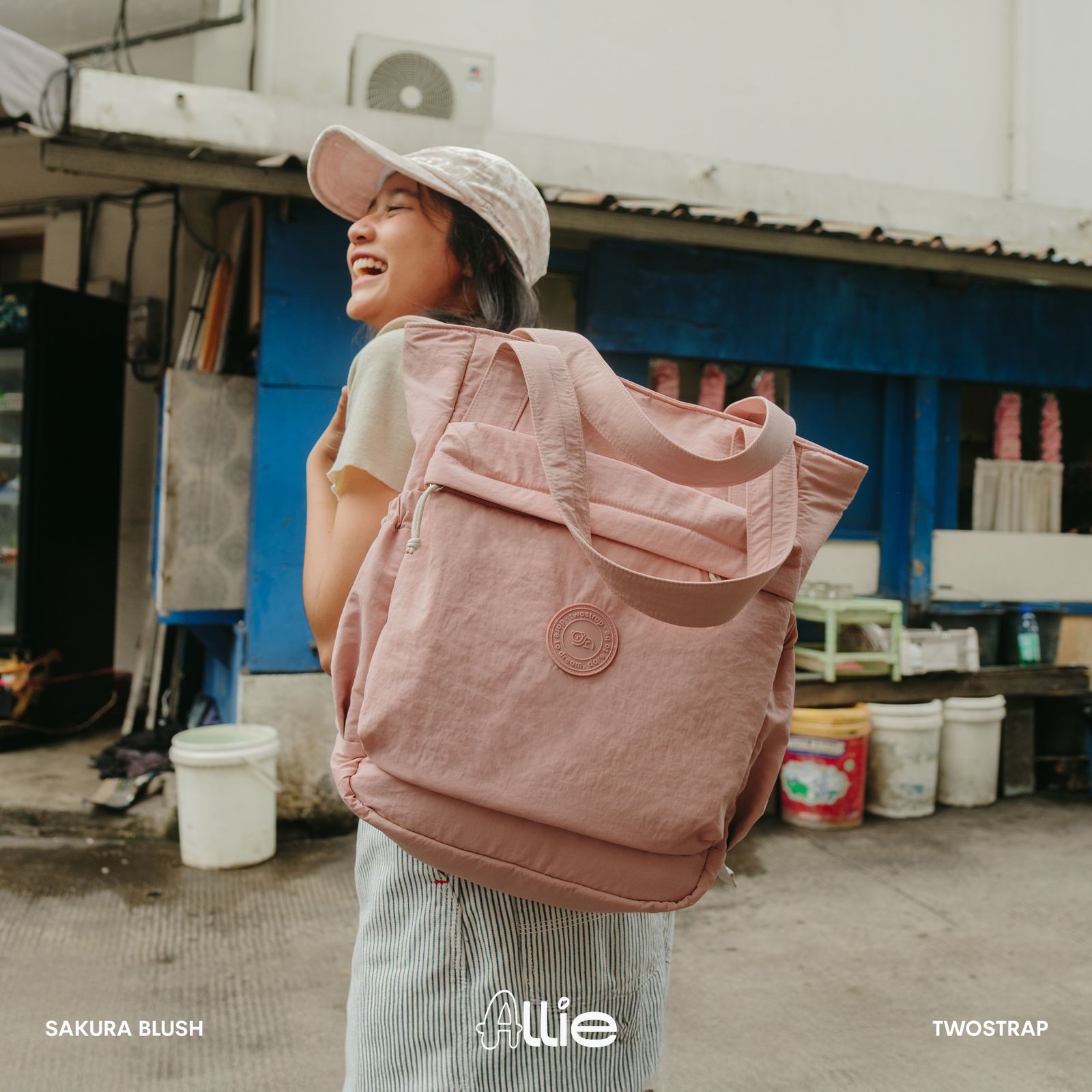 ALLIE adalah produk Totepack pertama Twostrap untuk memenuhi kebutuhan sehari-hari mulai dari sekolah, kuliah, commuting ataupun bekerja. Memiliki 8 pilihan warna monotone, ALLIE Totepack menggunakan bahan Nylon Crinkle yang water repellent sehingga aman terkena percikan air.
