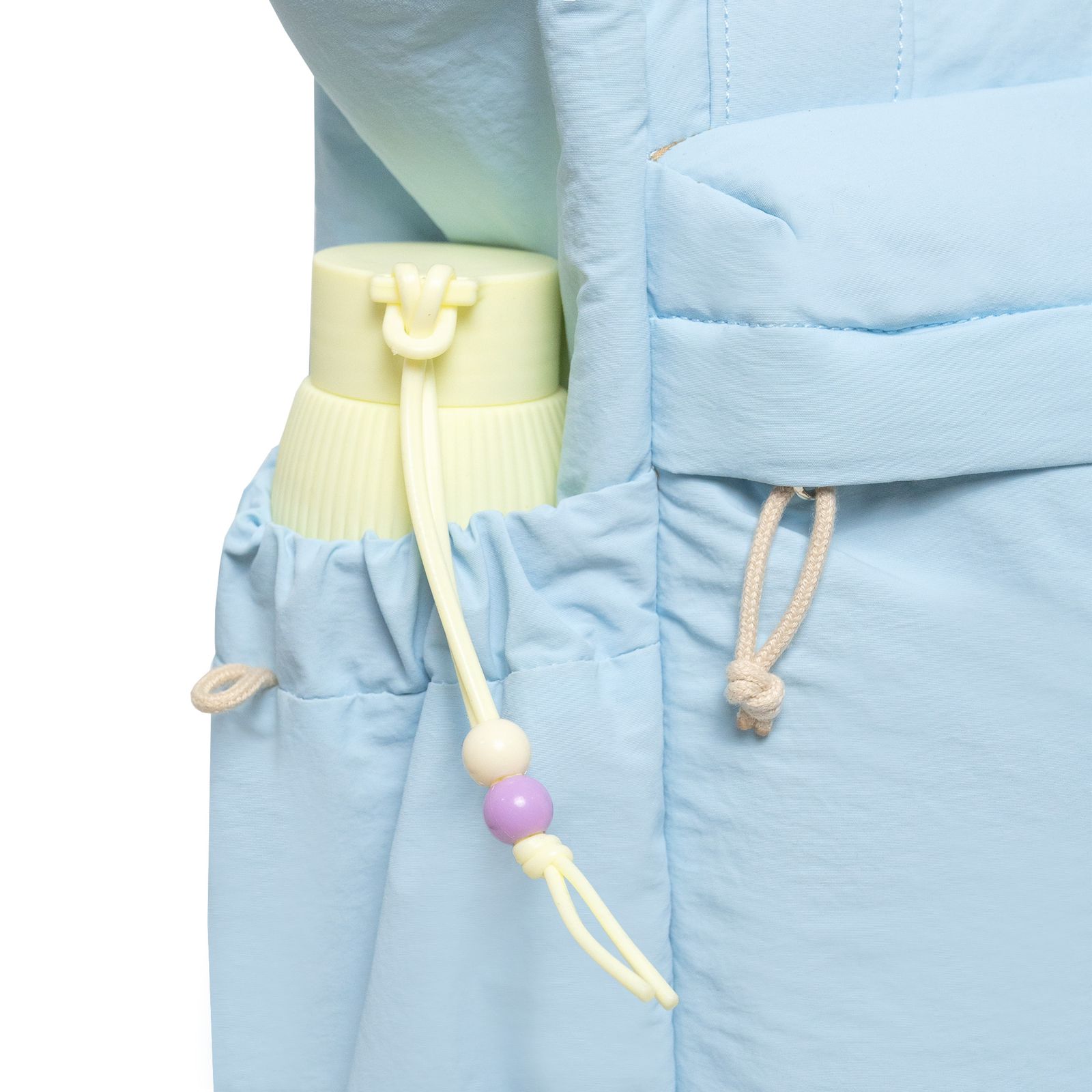 Bagian luar ALLIE Totapack dilengkapi elastic side pocket di kanan dan kiri untuk membawa tumbler dengan diameter hingga 7 cm atau payung lipat. Di bagian depan terdapat loop untuk menggantung aksesoris seperti bagcharm atau mini pouch sebagai personalisasi.